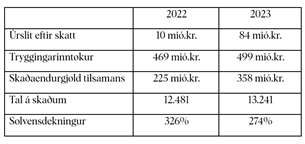 Óvanliga nógvir skaðar, yvir hálvtfjórðhundrað milliónir krónur í endurgjaldi og gott úrslit, serliga tí íløgurnar aftur geva gott avkast. Hartil fleiri og betri tryggingar og tænastur - og eitt stórt stig inn í talgilda heimin við appini Mín Trygging. So stutt kunnu vit taka saman um 2023.