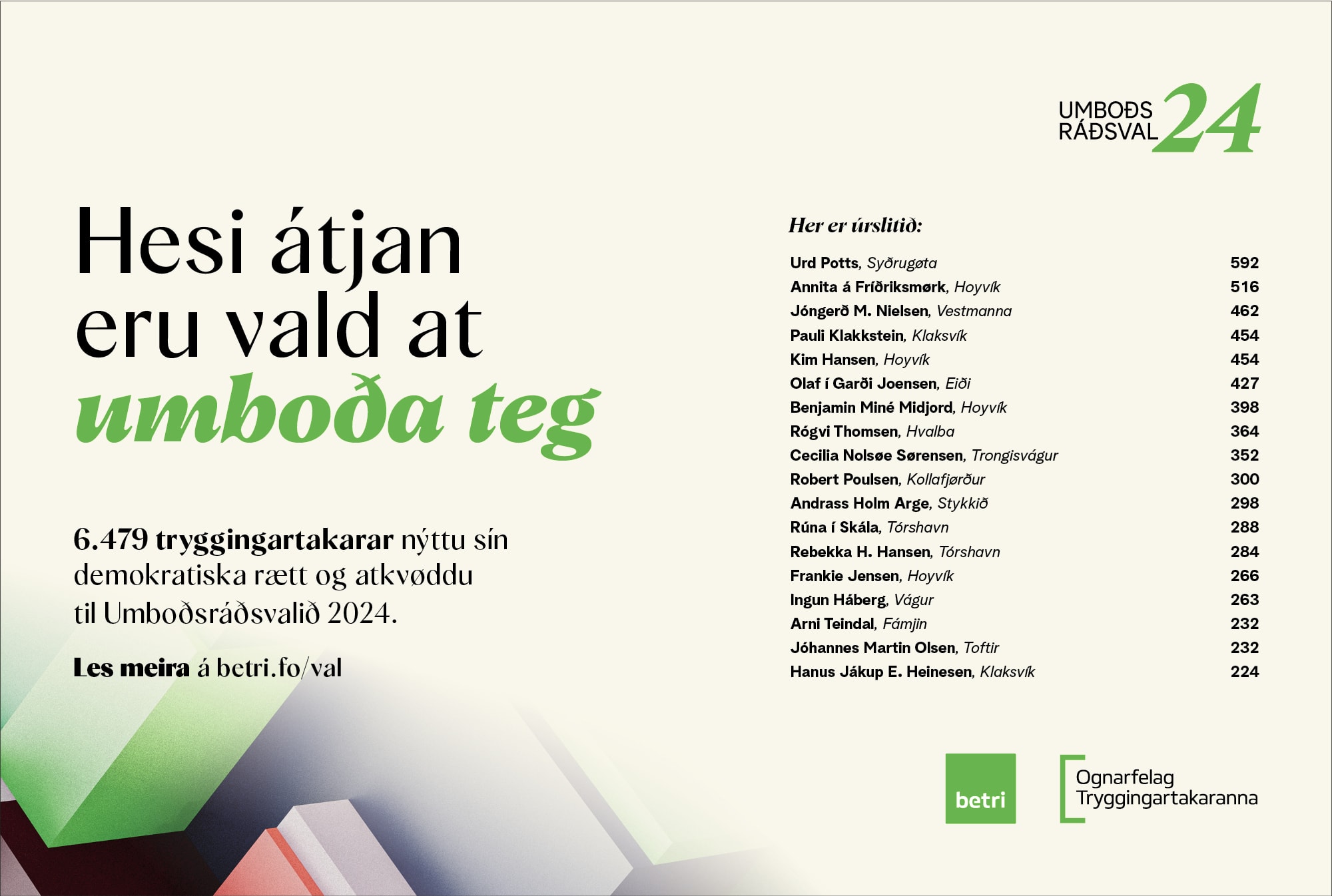 Umboðsráðsvalið er nú liðugt, og úrslitið er greitt.